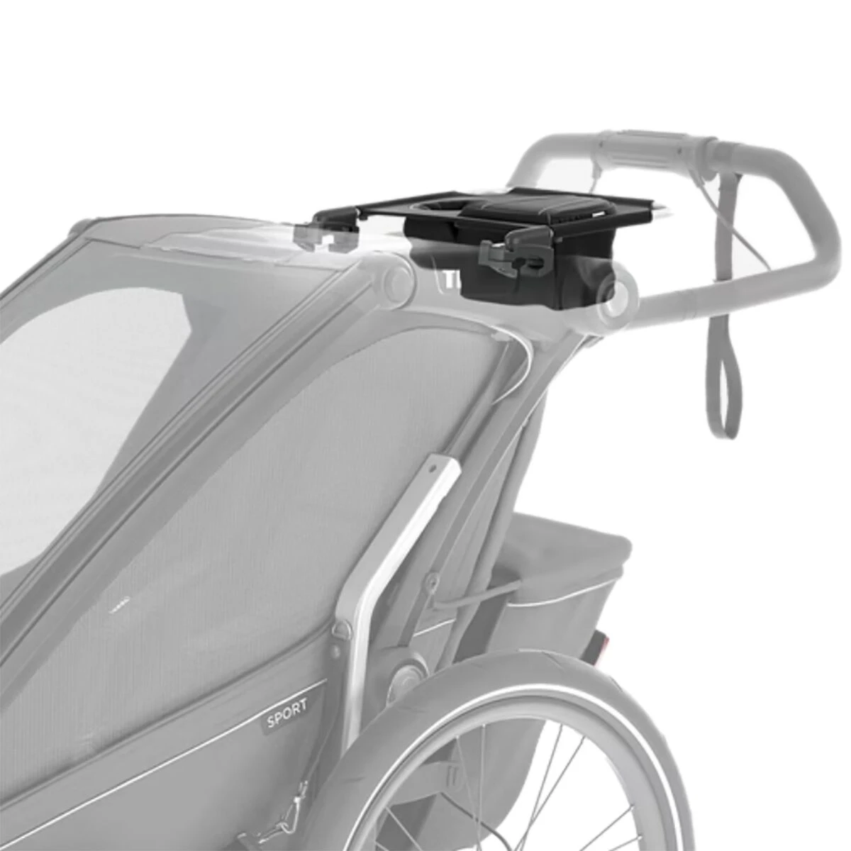 Add a zippered pocket and built-in cup holders to your Thule double child carrier.
